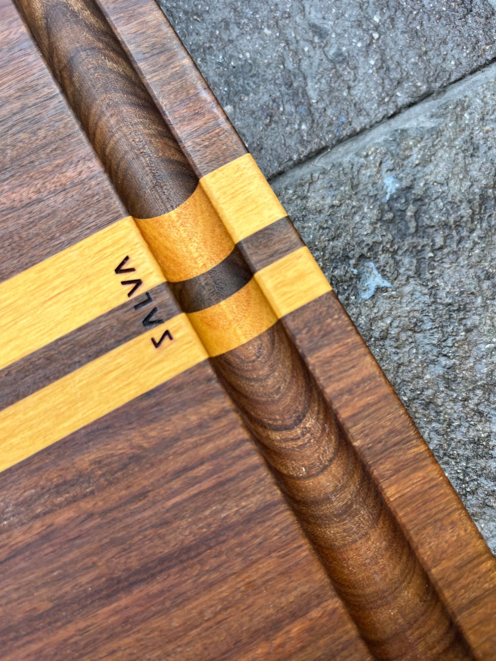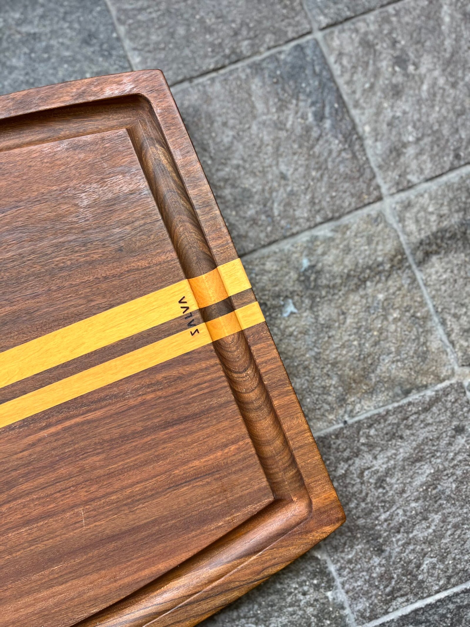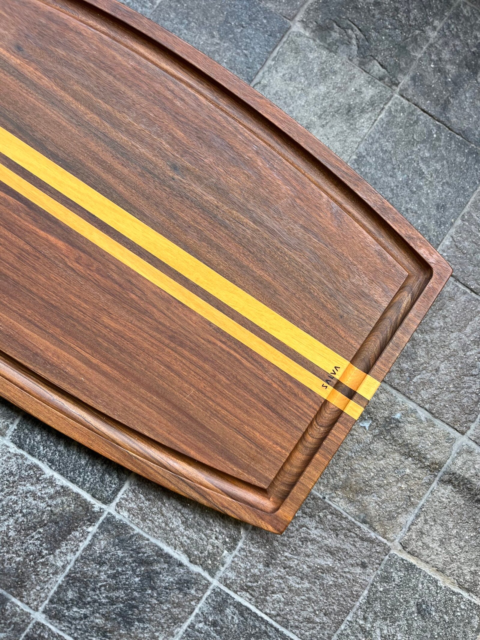 La Entrañera Curva de SALVA está pensada para quienes disfrutan cocinar con estilo y precisión. Su diseño alargado y curvado facilita el corte de piezas grandes como la entraña o el asado, ofreciendo un soporte cómodo y seguro. Fabricada en maderas peruanas sostenibles con acabado natural, incorpora un canal perimetral que recoge jugos y mantiene limpia la superficie de trabajo.