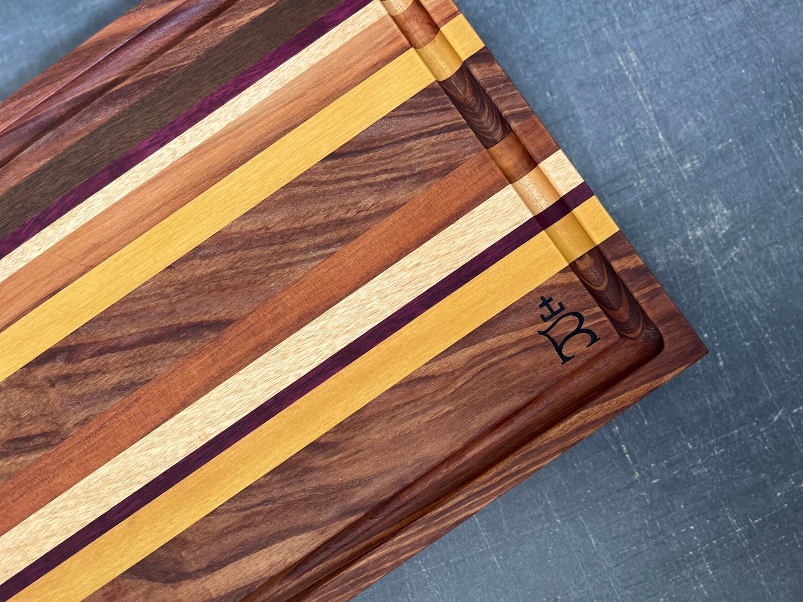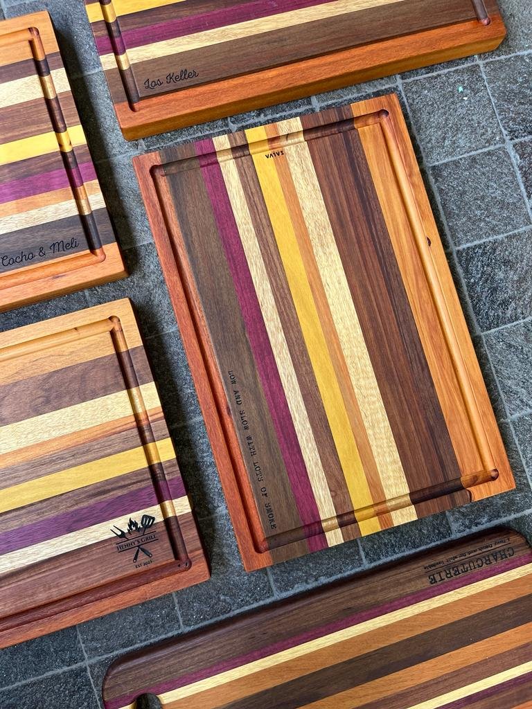 Sólida, funcional y con carácter, está fabricada artesanalmente en maderas peruanas sostenibles con patrón edge grain, ofreciendo una plataforma estable y resistente de 3.5 cm de grosor.