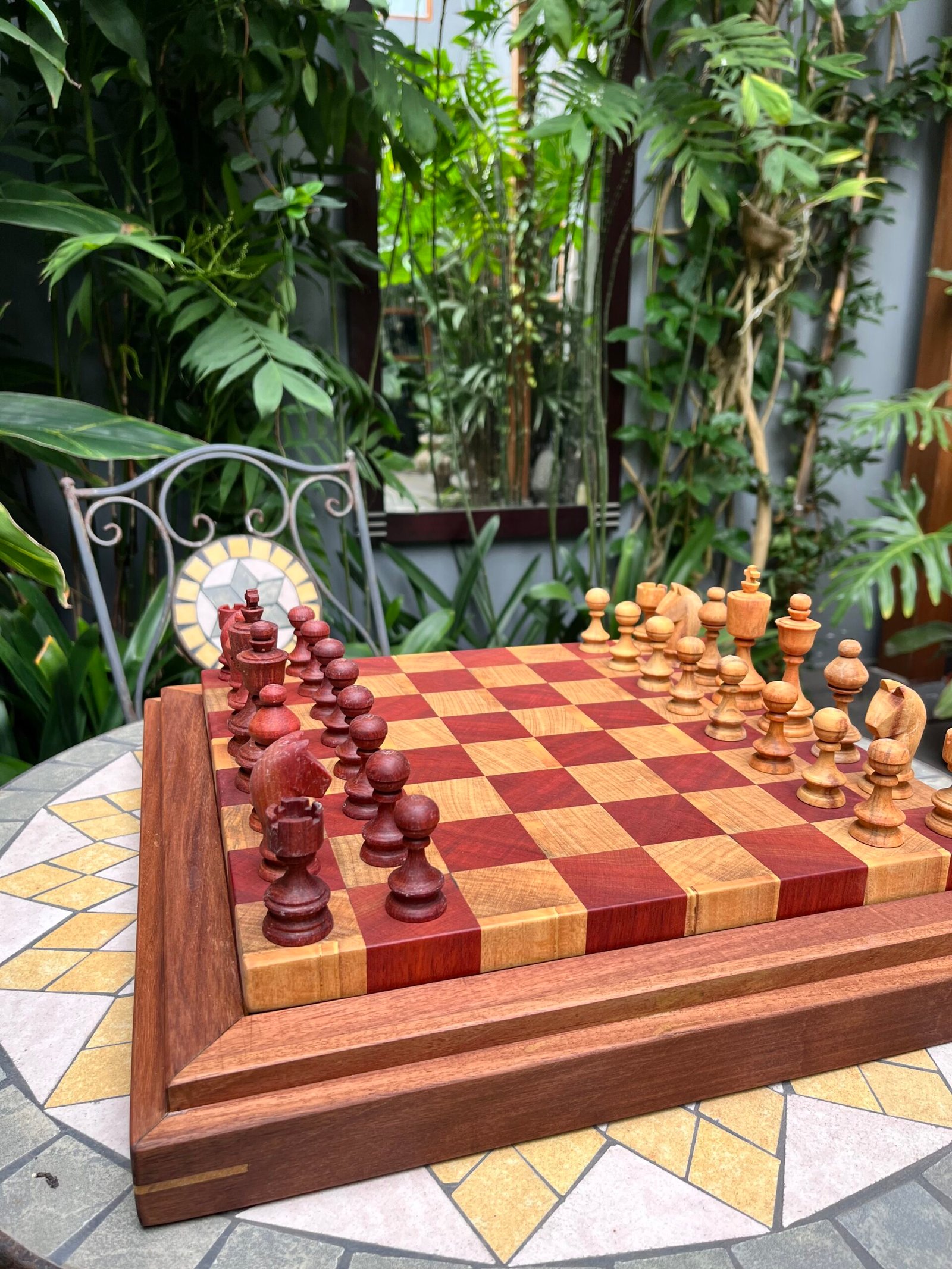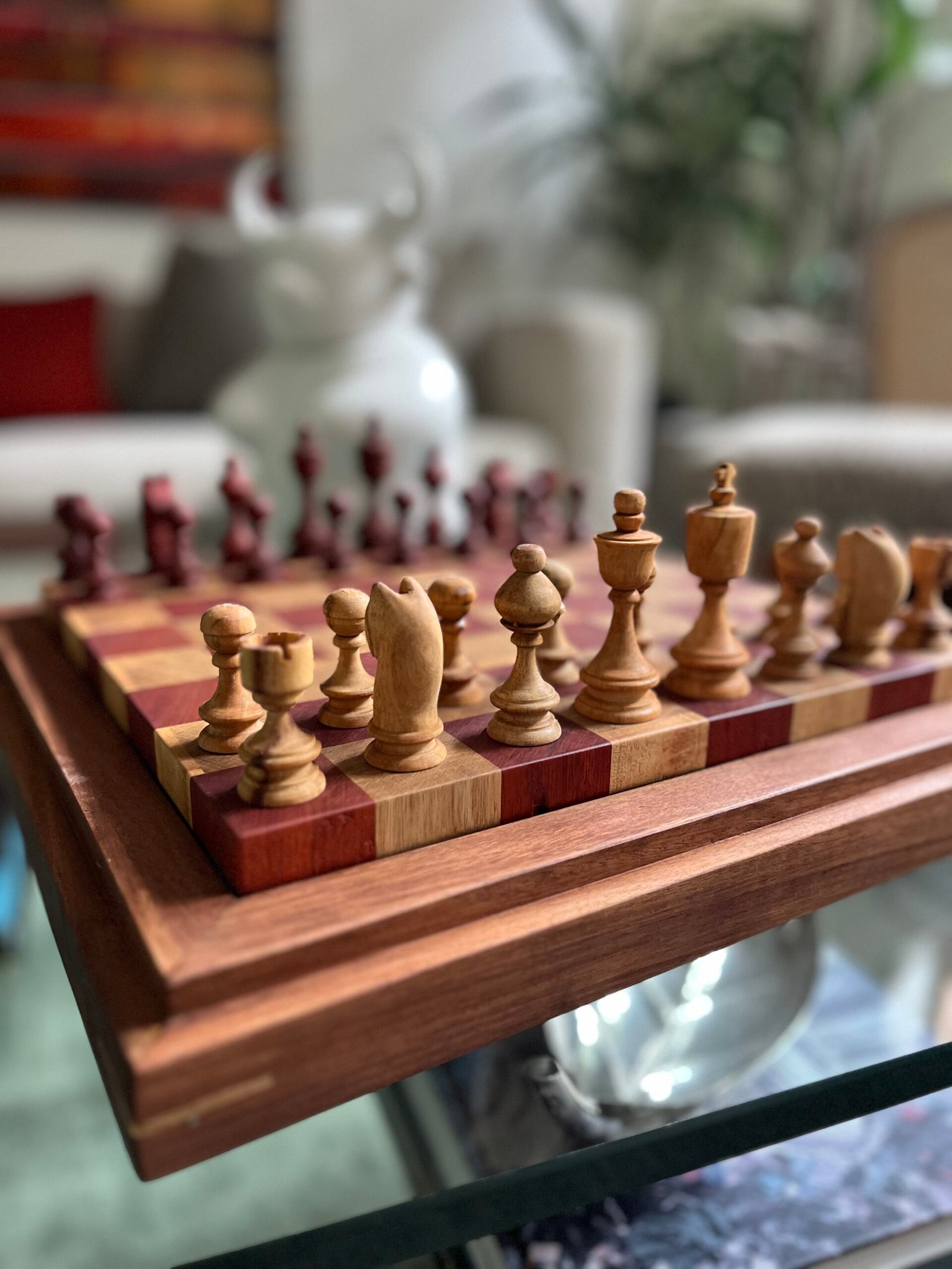 El tablero de ajedrez de SALVA es más que un juego: es una pieza artesanal que refleja la calidad y el detalle que caracterizan a nuestro trabajo con la madera. Cada cuadrícula está cuidadosamente ensamblada para lograr precisión y armonía, respetando las vetas y tonos naturales de la madera peruana.